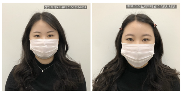 눈썹 컨설팅 완료 전, 후 사진이예요